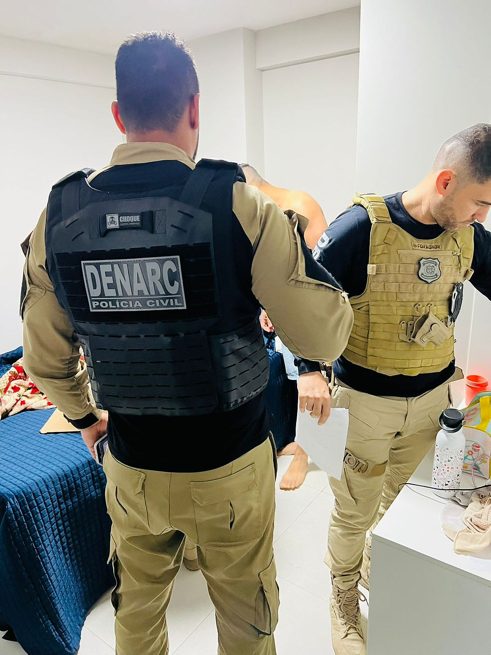Na execução foram empregados 100 (cem) Policiais Civis, entre Delegados, Agentes e Escrivães.